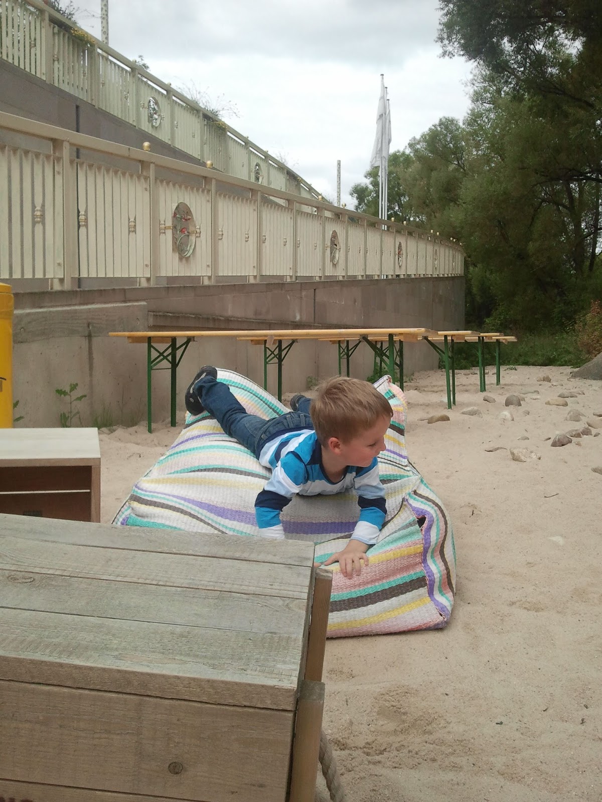 Dann haben wir einen tollen Vormittag gehabt, es war ein Sonntag Vormittag, erst waren wir mit Oma und Opa Eis essen, danach sind wir an Beach bei uns gegangen, der nicht weit von der Eisdiele weg ist und haben da getobt, sind von großen Steinen gesprungen und jeder Strand stuhl und Sitz Sack würde getestet :)